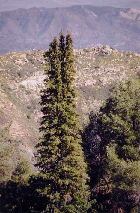 Growing with Pinus lambertiana on Cone Peak, Santa Lucia Mts.