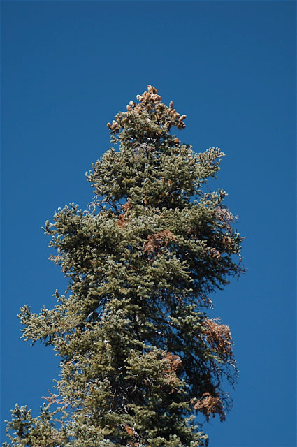 Showing the short needles, similar to the San Pedro Martir trees, but not as thick.