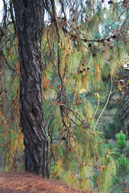 compared to the thick ones of Pinus oocarpa. The needles in groups of three, the