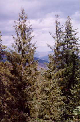 There are 17 conifer species growing in the Russian Peak area, possibly more than any other area of compable size in the world. It has been preserved as a wilderness area for this very reason. October 2001.