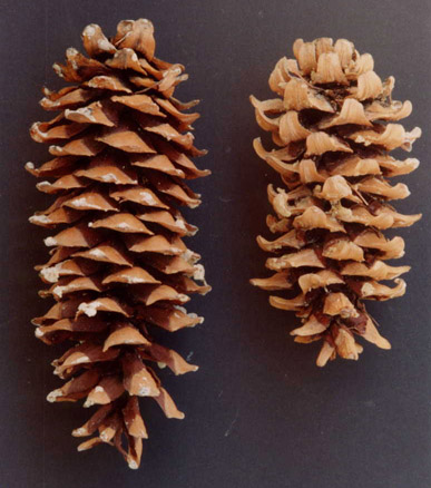 Pinus reflexa (left) and Pinus ponderosa brachyptera (right)
