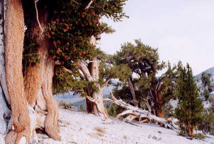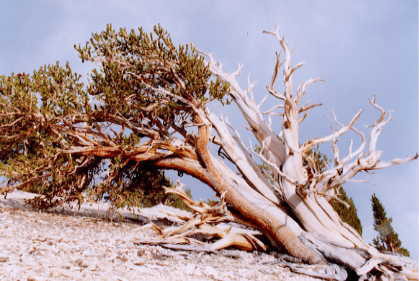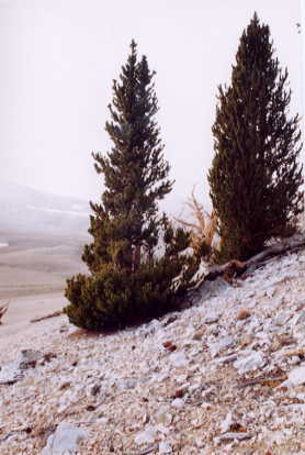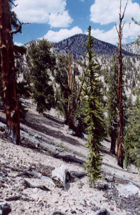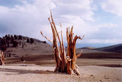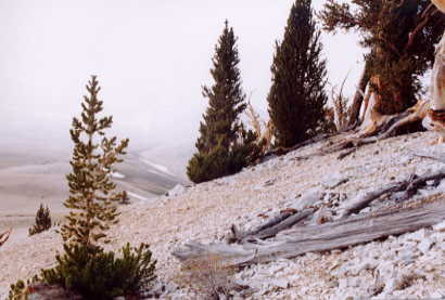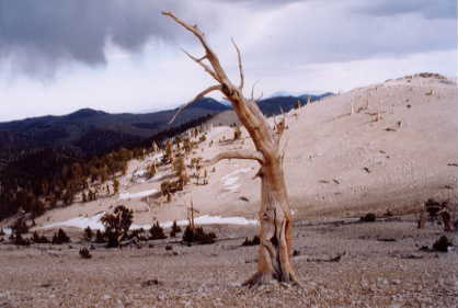 timberline has moved down an estimated 330 feet in the last 1000 years. Dead trees may remain for thousands of years in the White Mountains due in part to the very cold dry climate.