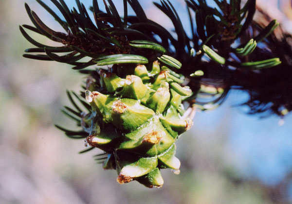 green, and its branches are ascending. The cones of the two species were