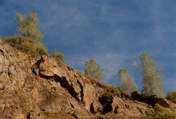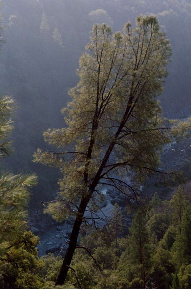 monophylla are widely separated, sabiniana growing in the western foothills of the Sierra Nevada, and monophylla at the foot of the eastern Sierra. Here at the southern end of the Sierra, the mountains are low enough for species of each side of the mountains to cross over to the other side.
