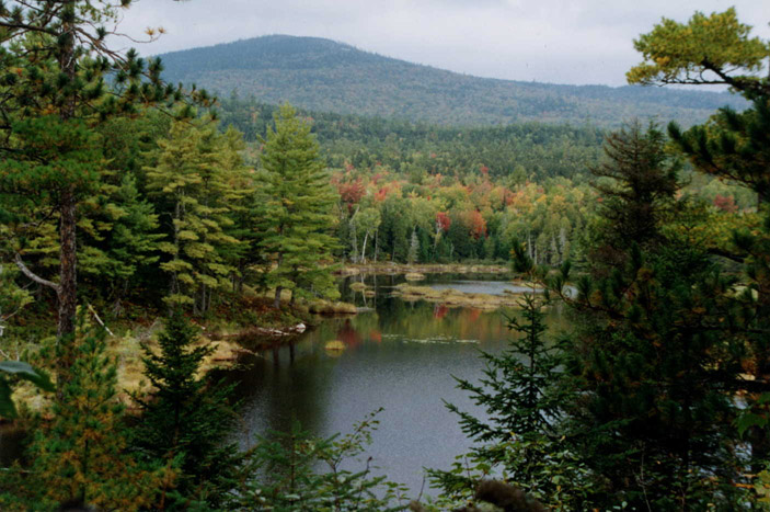 Also seen is this photo is Pinus resinosa on either side of the foreground, along with Abies balsamea in the center foreground. On the right side of the poto can be seen a Larix laricina.