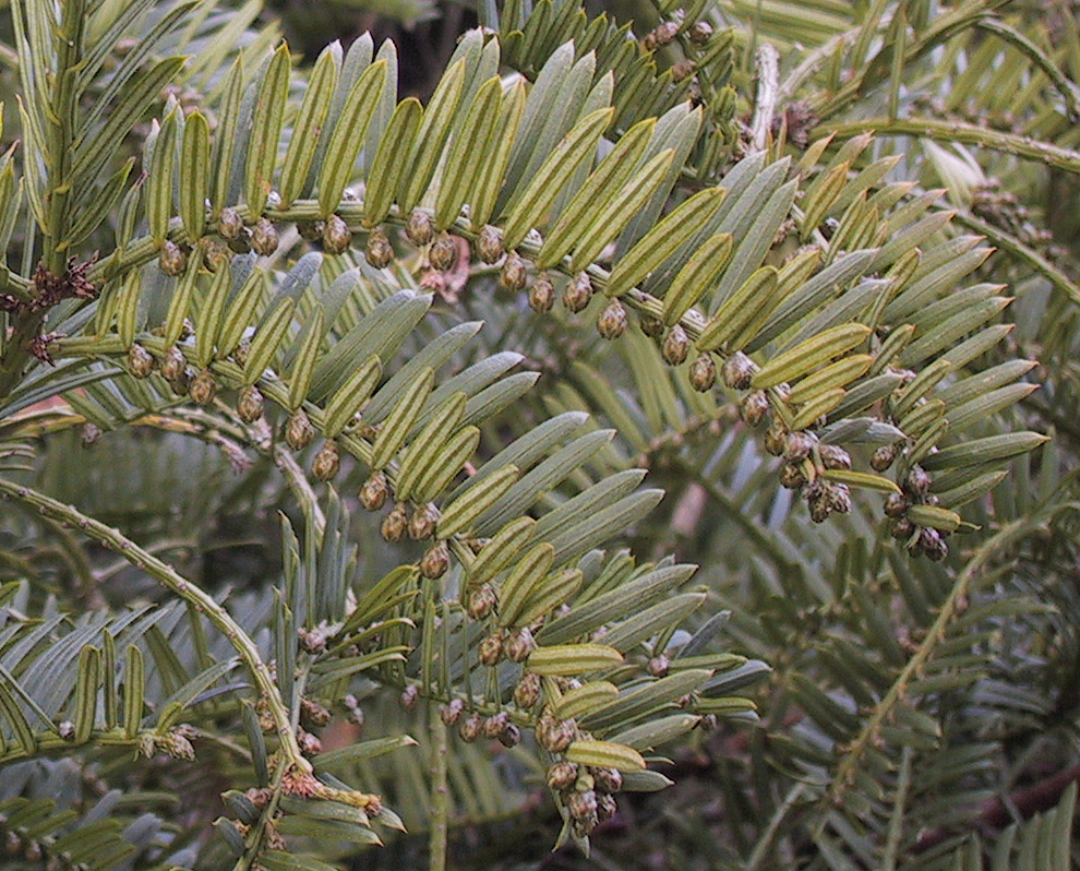 ¤ 3149 Cephalotaxus drupacea - Shoot with male strobili Botanical Garden of Geneva Switzerland |