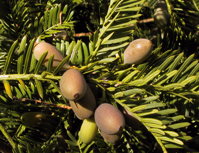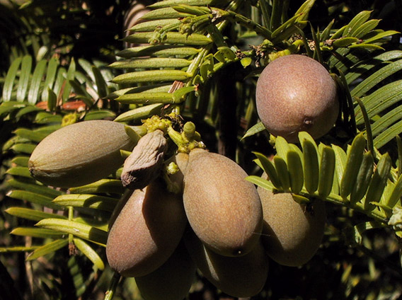 ¤ Cephalotaxus drupacea - Mature female cones Botanical Garden of Geneva Switzerland |