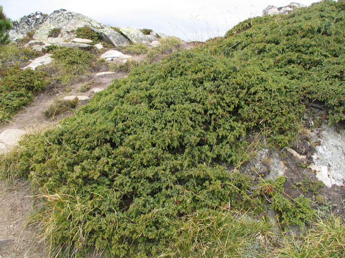 Carpets of Juniperus with Pinus cembra in the background.